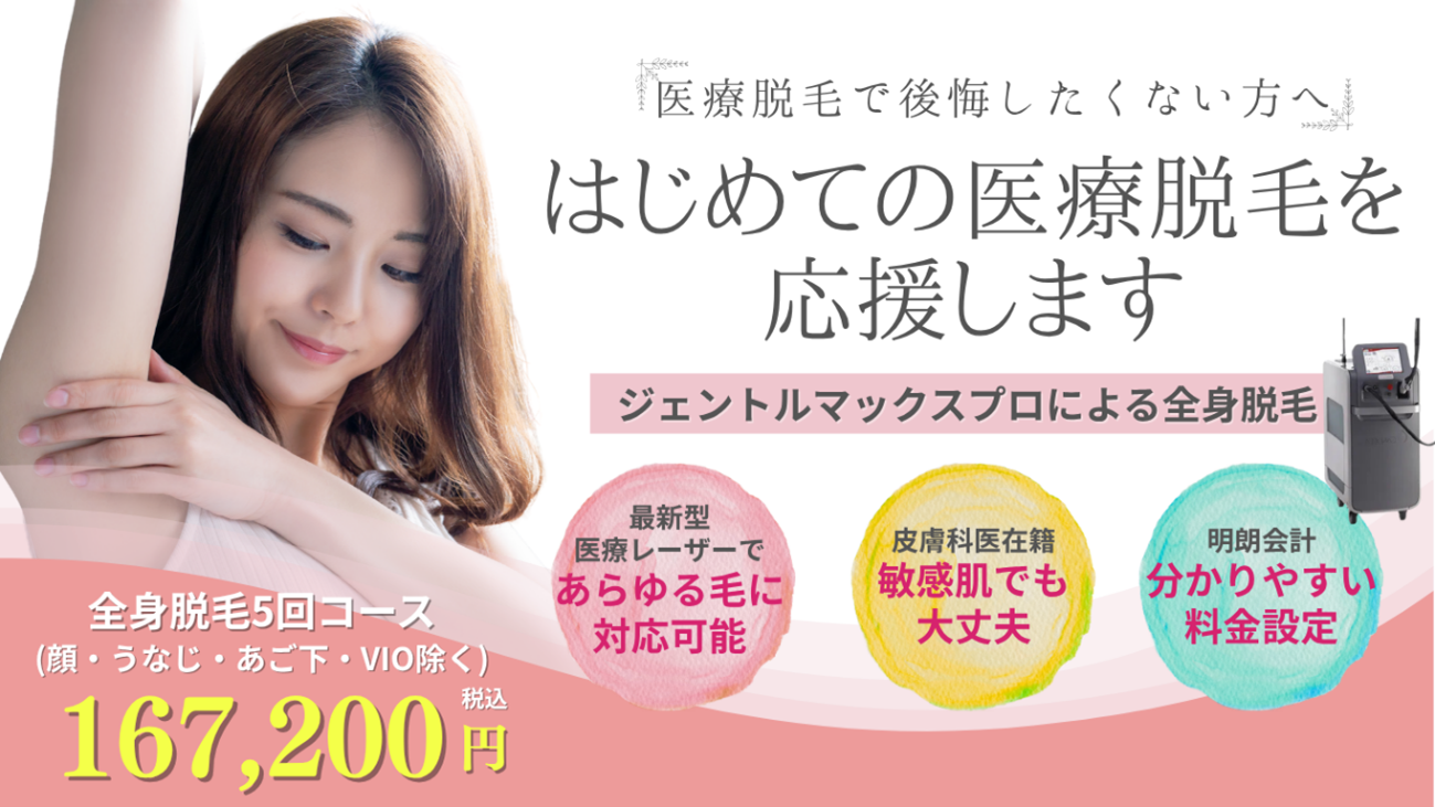 当クリニックでは、厚生労働省承認の最新機器「ジェントルマックスプロ」を使用し、安全で効果的な医療脱毛を実現。
