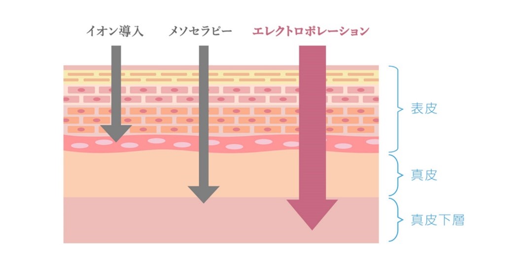 エレクトロポレーションは真皮層まで美容成分を確実に届けることで、より高い美肌効果を期待できるようになりました。